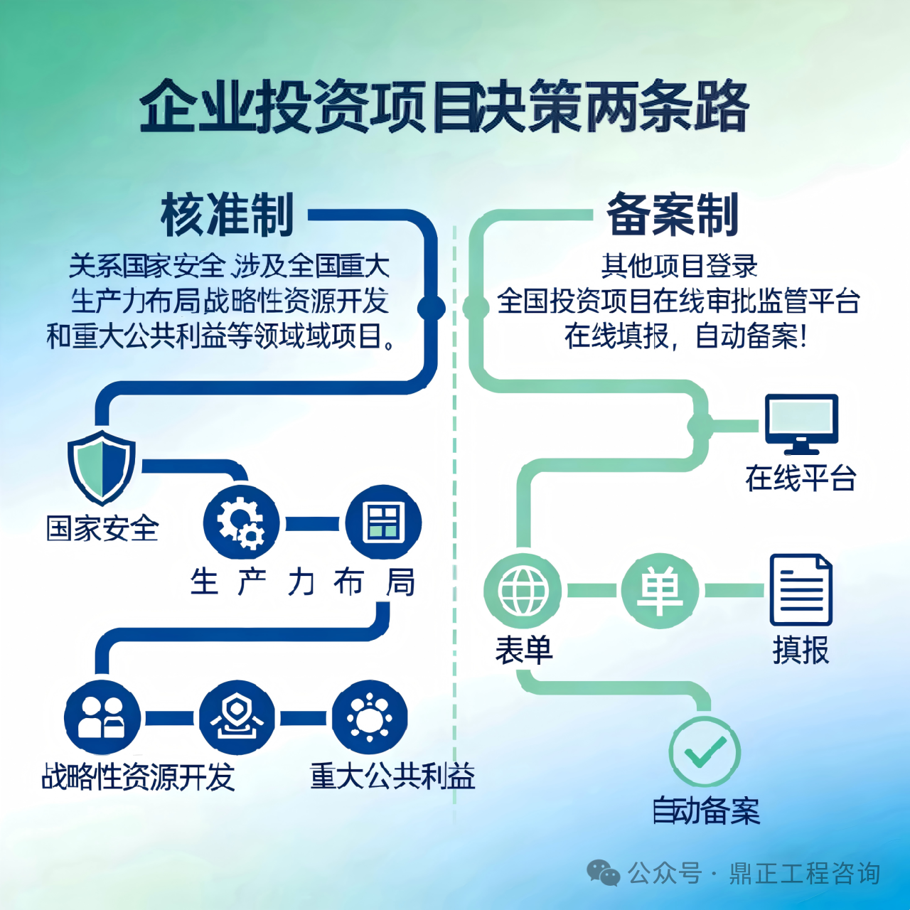 核准制——对关系国家安全、涉及全国重大生产力布局、战略性资源开发和重大公共利益等领域的项目,如大型国防科工园区、“东数西算”国家算力枢纽节点、西藏盐湖锂资源综合开发、跨省长距离高压天然气主干管道等,提交“项目申请书”,政府核准即可;