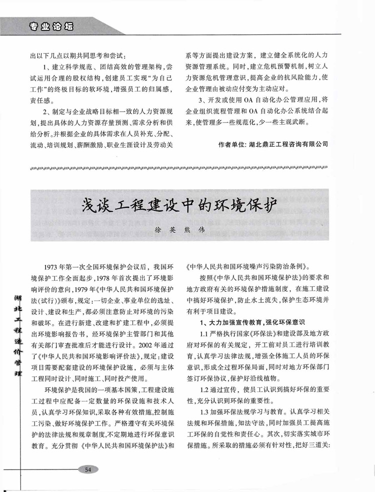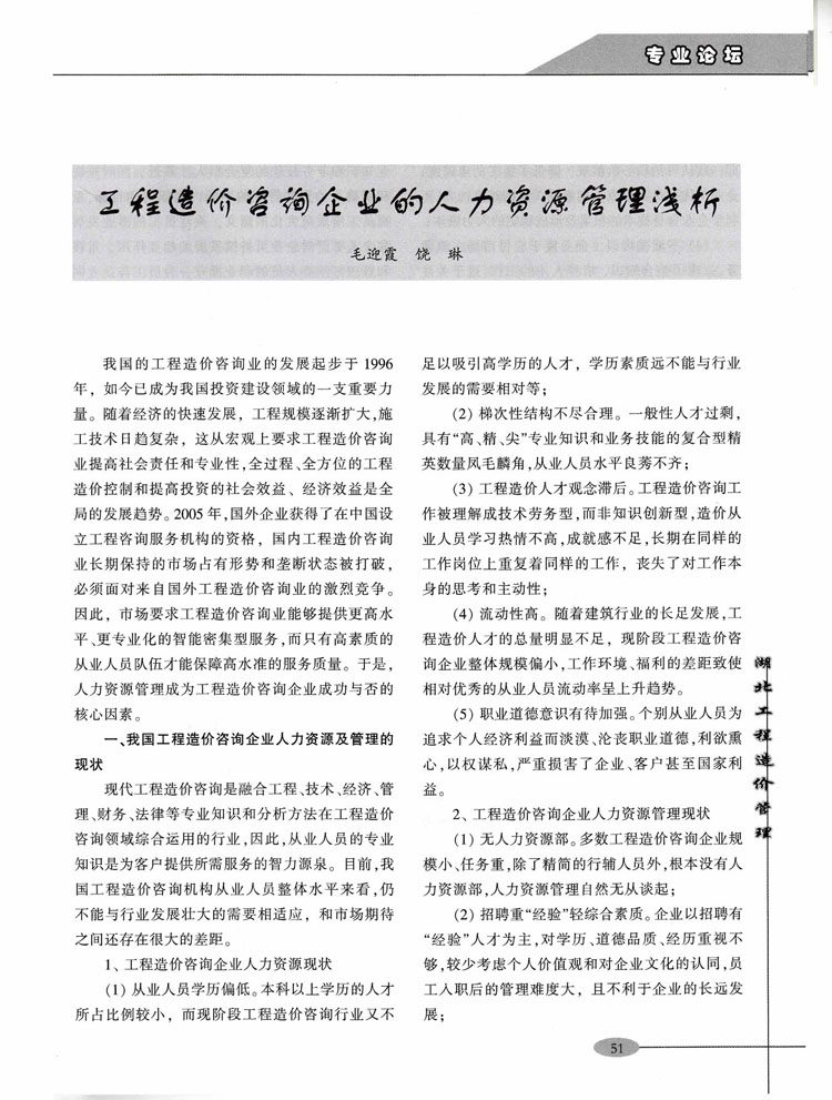 热烈祝贺我公司员工所著文章《工程造价咨询企业的人力资源管理浅析》在《湖北工程造价管理》杂志