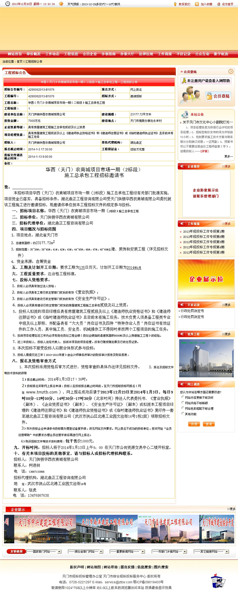 华西(天门)农商场项目市场一期(二标段)施工总承包工程