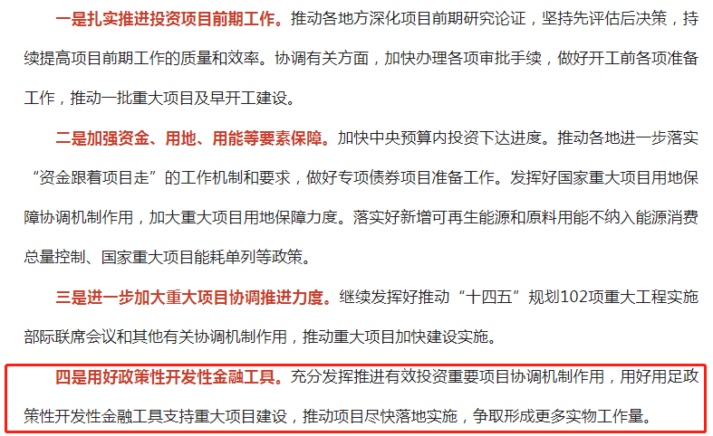 国常会提出的政策性、开发性金融工具为项目资本金又增加了一个新的资金渠道,可以更大程度的撬动市场资金,引导金融机构加大配套融资支持,吸引民间资本参与。目前各省市正积极推进政策性、开发性金融工具项目申报组织和资金投发等工作,持续提升地方金融治理能力,优化区域金融创新结构,从而不断激活金融资源流入,促进基础设施投资、助力重大项目建设。