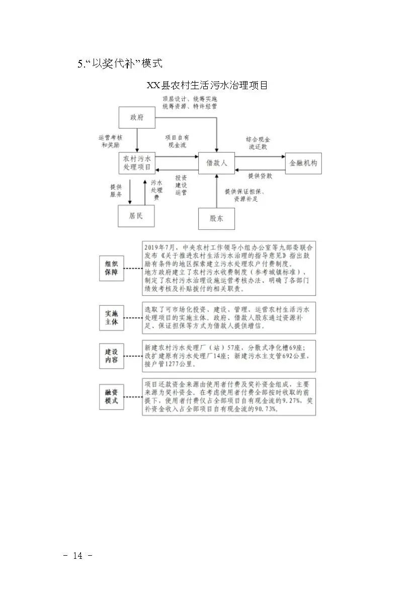(五)多措并举,创新模式。地方政府统筹安排,为符合条件的项目争取多元化的资金,丰富项目资金筹措渠道。鼓励支持市场化方式运营的项目,包含政府与社会资本合作(PPP)、特许经营,以及环境综合治理托管、环境污染第三方治理、生态环境导向的开发(EOD)等模式。