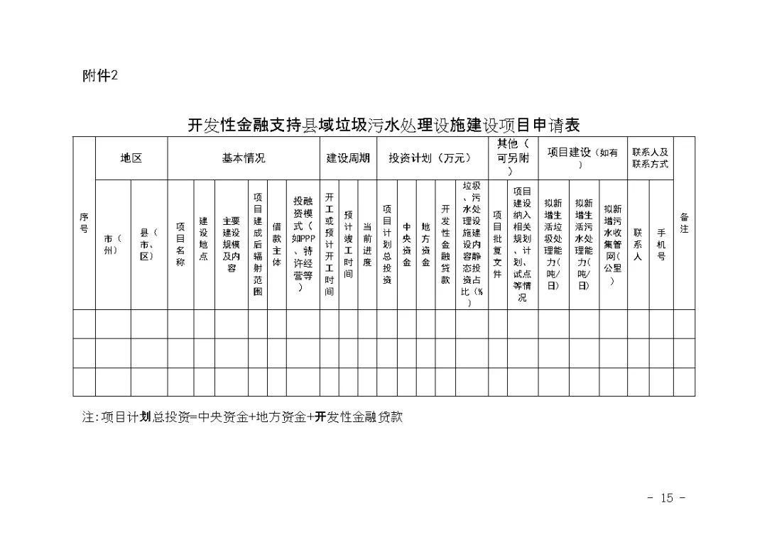 2.开发性金融支持县域垃圾污水处理设施建设项目申请表