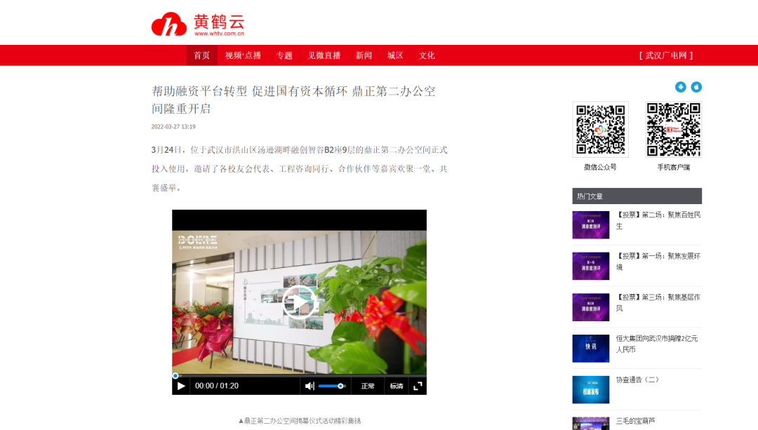 ▲武汉广播电视台汉新闻对鼎正第二办公空间揭幕仪式报道
