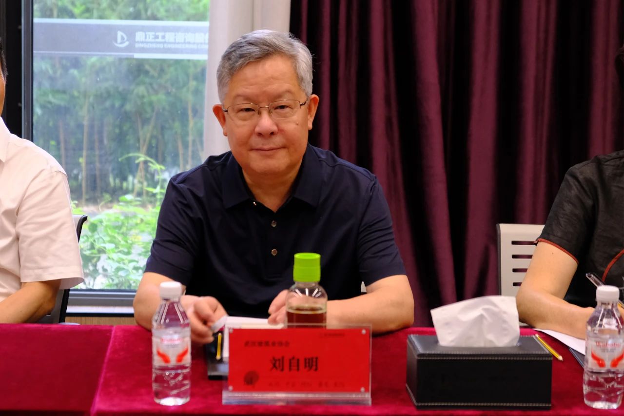 6月18日,武汉建筑业协会常务副会长刘自明、秘书长李红青一行到访鼎正调研交流。鼎正董事长王雁然、技术总监朱立冬、副总经理彭亮出席座谈会并热情接待。