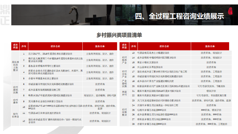 鼎正始终践行“以全过程工程咨询及PPP全生命周期咨询服务为先导、以投资管控为主线、以项目增值为目标”的一站式工程咨询服务理念,积极探索参与乡村振兴的领域与路径,紧跟乡村振兴新动向,充分发挥工程咨询企业高智力支撑作用,干出工程咨询新作为!