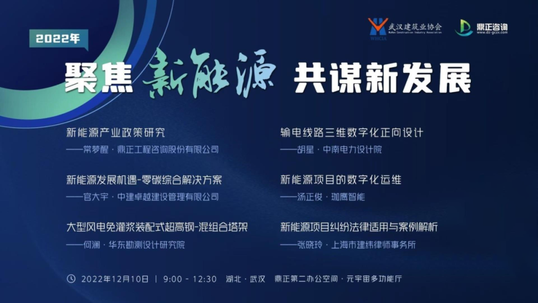 12月10日上午,由武汉建筑业协会主办、乐玩(中国)承办的“聚焦新能源·共谋新发展”研讨会在鼎正第二办公空间举行。本次研讨会聚焦能源行业面临的机遇与挑战,来自新能源产业链条上各个专业环节的专家和企业代表,分别从各自角度出发给出能源可持续发展的路径与方案,共同推动能源经济“绿色复苏”和全球能源转型发展。