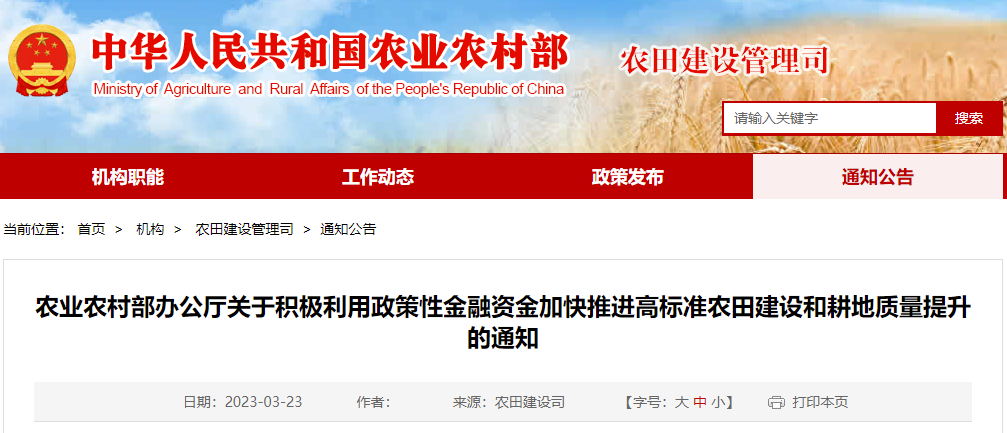 为贯彻落实党中央、国务院决策部署,进一步用好投融资政策工具,支持政策性金融机构立足职能定位,在业务范围内提供信贷支持,加快高标准农田建设,加强农田基础设施建设和运营管护,提升耕地质量,经商中国农业发展银行等单位,现就有关事项通知如下: