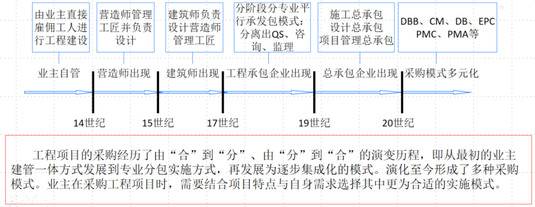 在这一演变过程中,业主的决策权不断被削弱,外部机构由工作责任不独立(为业主提供服务与支持,但不需要承担决策责任)发展为不完全独立(业主管理的必要补充),进而发展为责任基本独立(代表业主实施管理)。对工程项目的管理由“建管合一”逐步发展为“建管分离”。