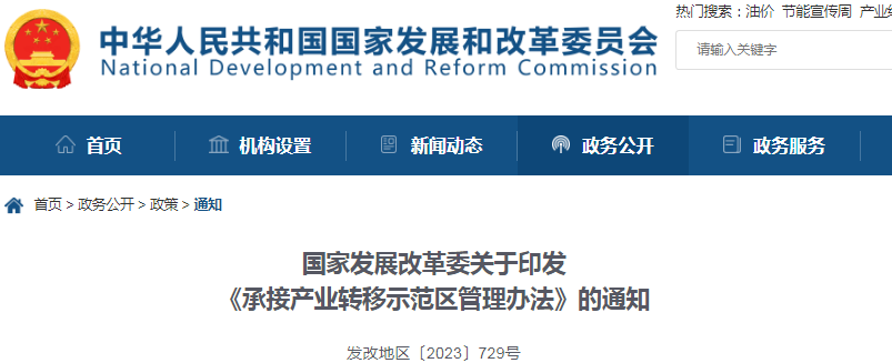 7月10日,国家发改委发布《承接产业转移示范区管理办法》(以下简称《办法》)的通知。