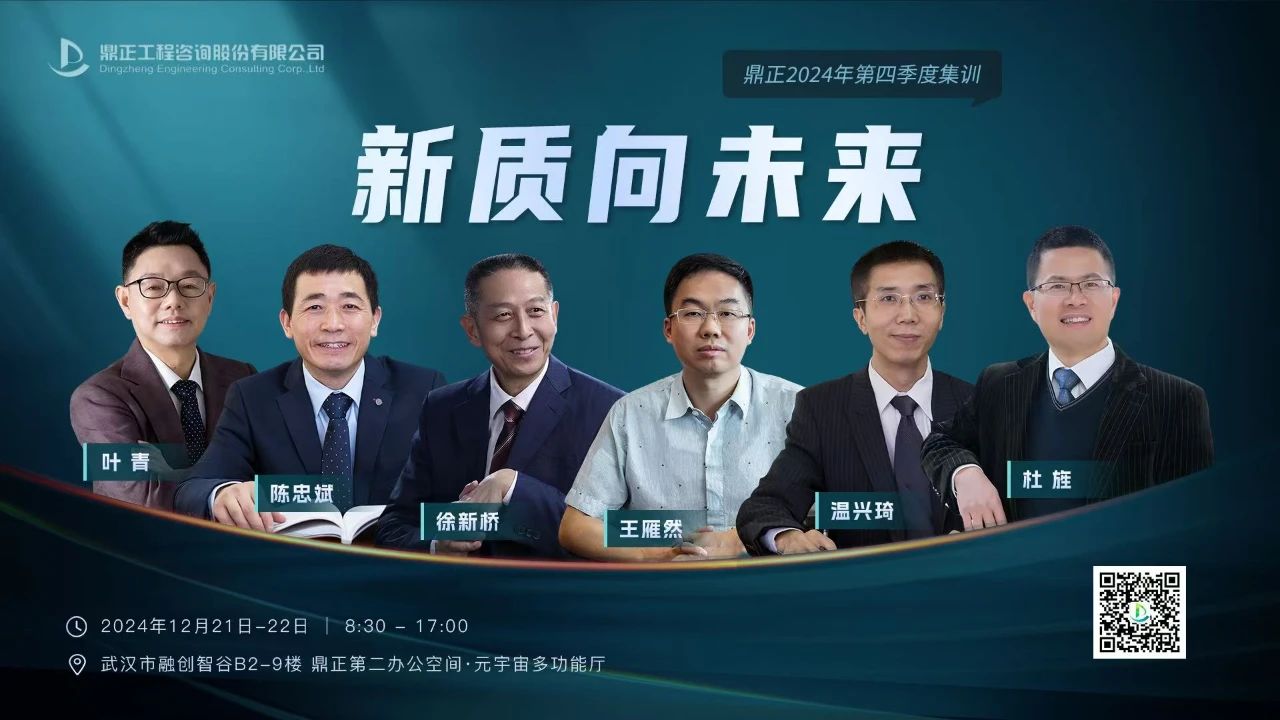 为全面洞悉国内外宏观经济形势及建筑行业的前瞻趋势,深刻剖析工程咨询行业新机遇与挑战,助推业务多元化转型与企业高质量发展,鼎正于12月21日至22日举办了第四季度“新质向未来”中高层管理研修班。
