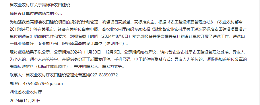 喜报 | 热烈祝贺我司入选湖北省农业农村厅高标准农田建设项目遴选设计单位