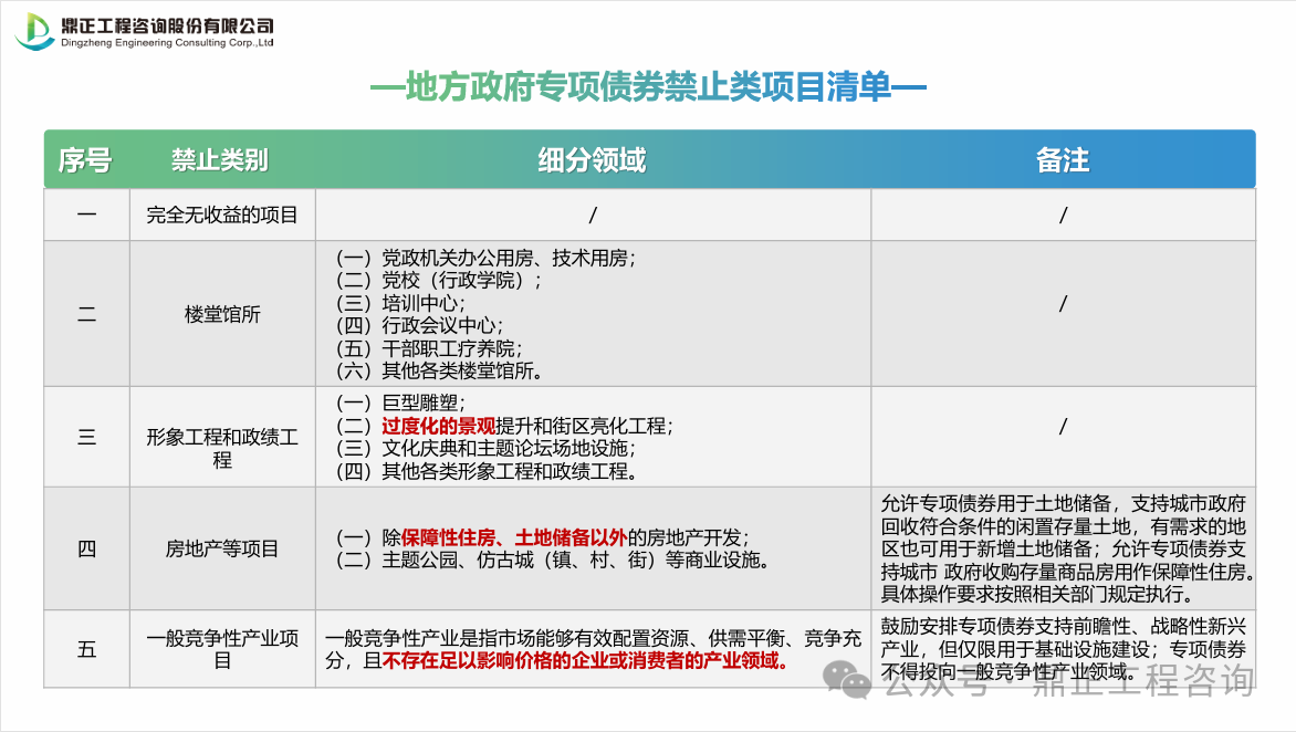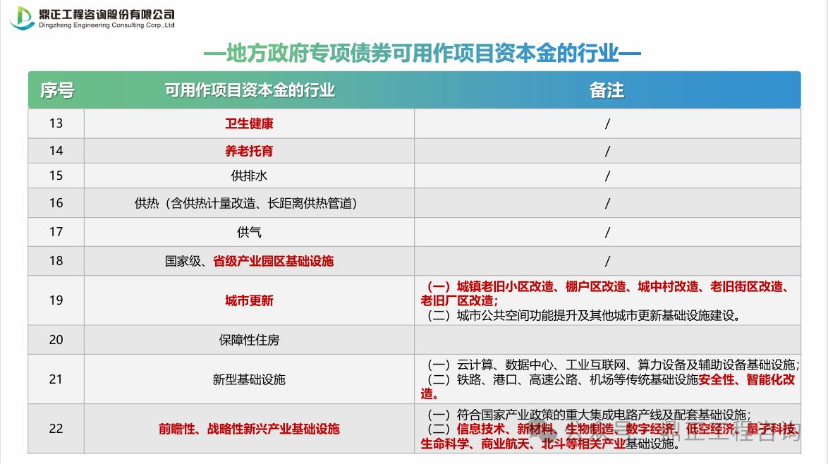 (2)资金投向:精准匹配专项债券可用作项目资本金的行业,或项目未纳入“负面清单”。