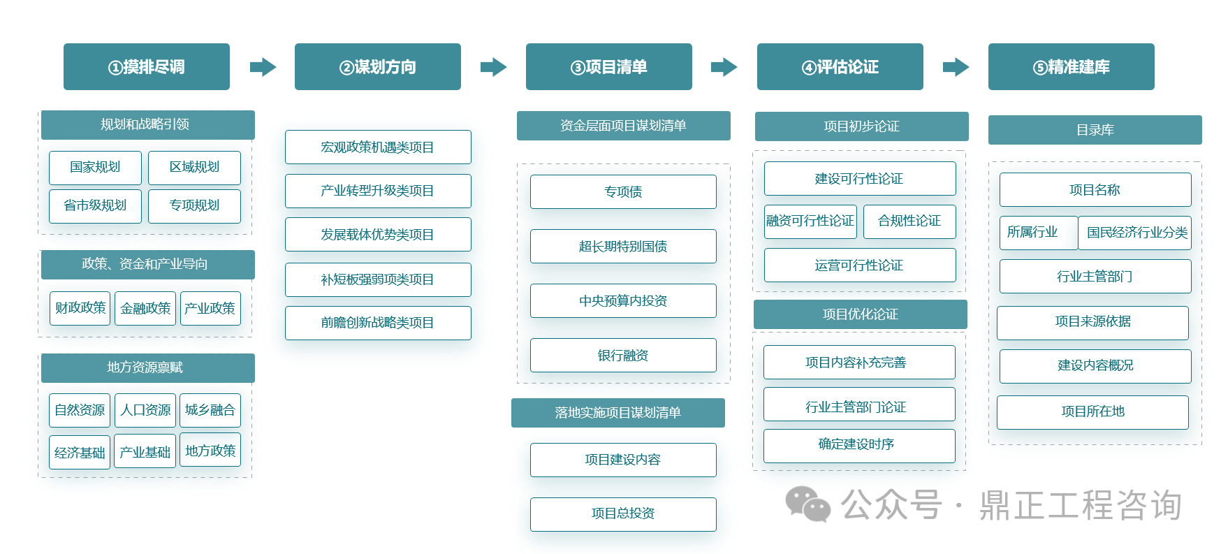 项目谋划一般可围绕以下五个方向:宏观政策机遇类项目、产业转型升级类项目、发展载体优势类项目、补短板强弱项类项目、前瞻创新战略类项目。结合前面梳理的规划与政策,以及当地基础条件,形成本地项目谋划方向。
