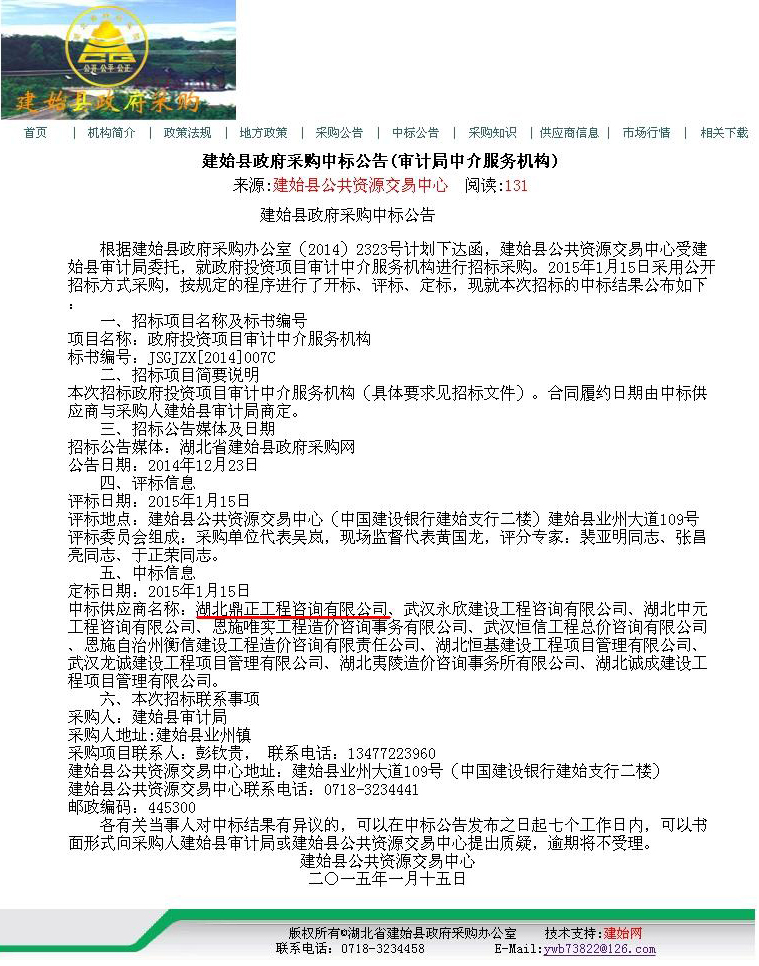 【经营成果】我司入选建始县政府投资项目审计中介服务机构库