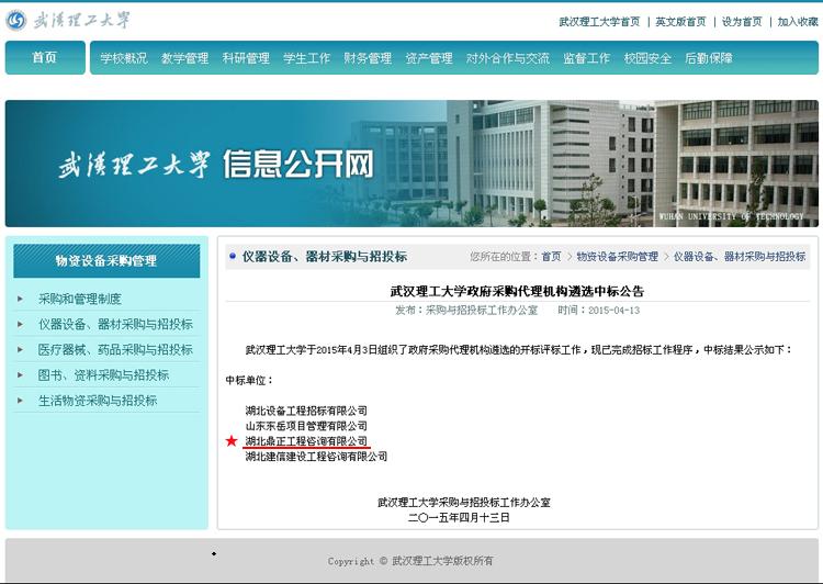 【经营成果】我司入选武汉理工大学政府采购代理机构库
