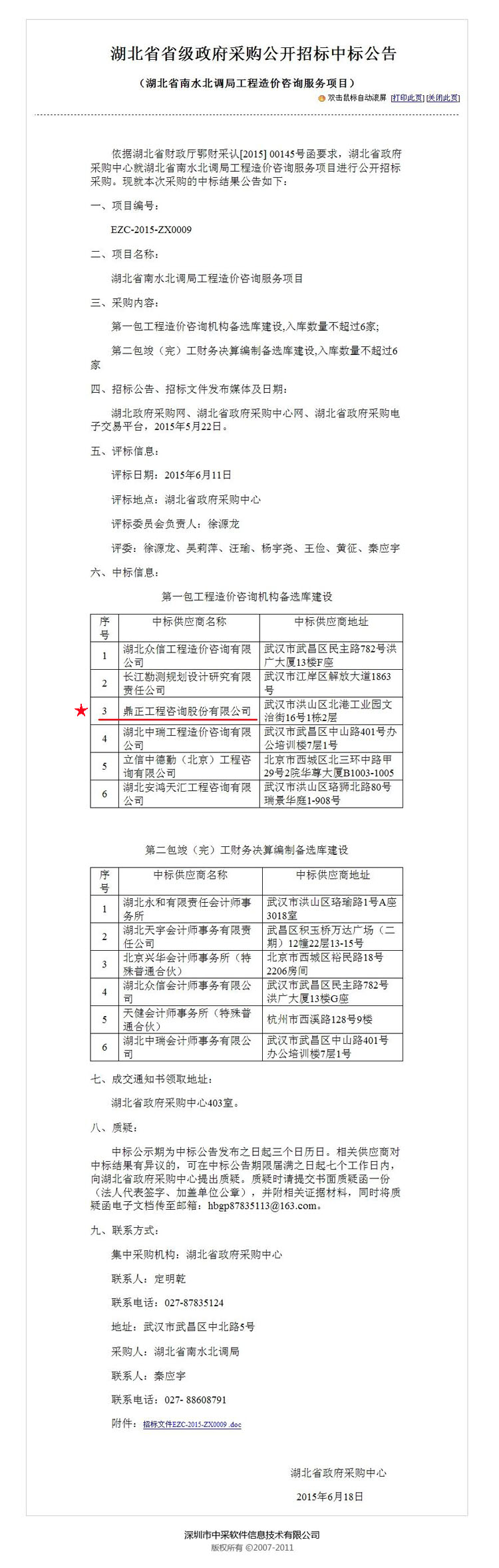【经营成果】我司入选湖北省南水北调局工程造价咨询机构备选库
