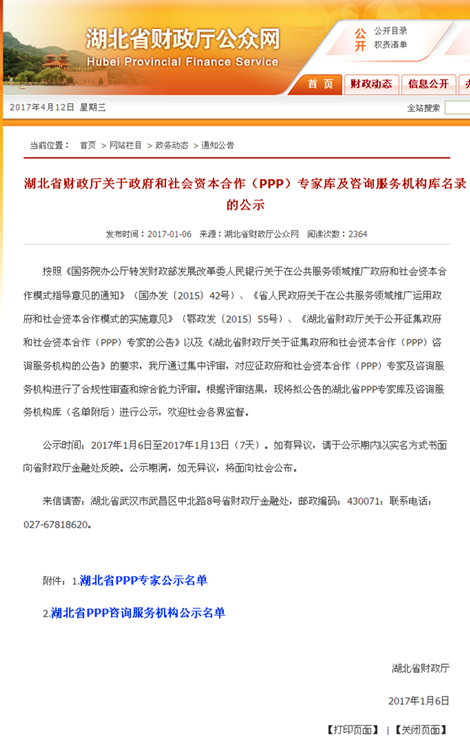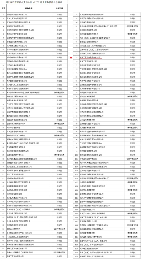 我司入选湖北省财政厅PPP咨询服务机构库,同时3位同事入选湖北PPP专家库