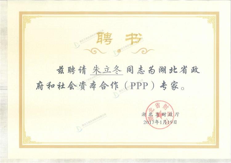 热烈祝贺我司成功入选湖北省财政厅PPP咨询服务机构库。同时祝贺我司王雁然、朱立冬、张宏亮3位同志入选湖北省PPP专家库。