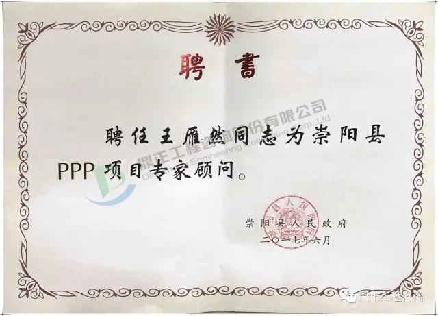 会中,崇阳县人民政府为王雁然先生颁发崇阳县PPP项目专家顾问聘书,负责指导崇阳县PPP工作。