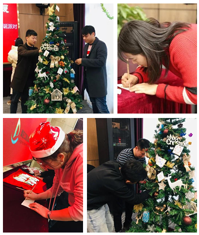 平安夜,行政人事部的同事们化身“圣诞老人”,贴心的为每一位同事准备了平安果;由鼎正大家庭共同装饰的圣诞树挂满了大家亲手写的祝福卡片,为圣诞节的到来更添一份浓浓的节日色彩。