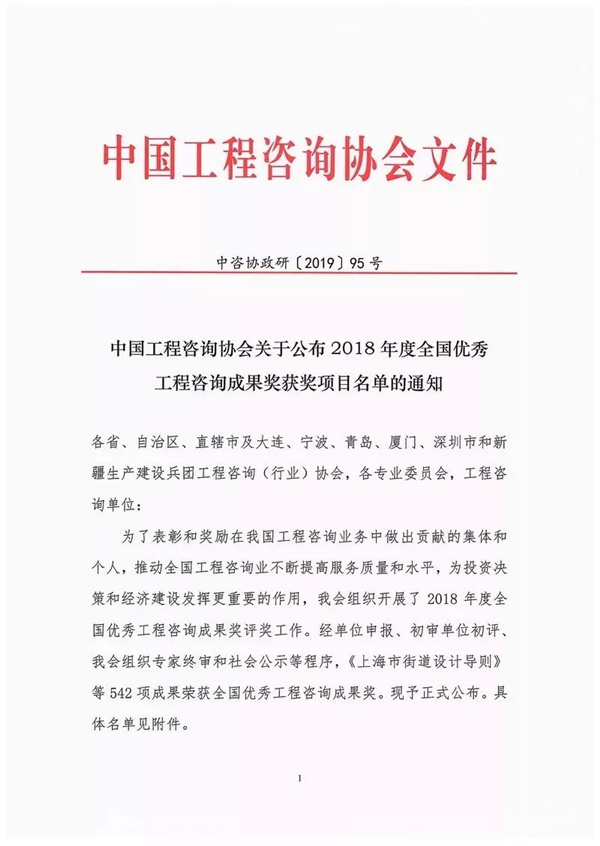 “全国优秀工程咨询成果奖”自1996年经国家发改委批准正式设立,后经国务院监察部确认保留,并由中国工程咨询协会每两年组织评选一次的工程咨询行业的全国性奖项,旨在表彰和奖励在我国工程咨询业务实践中做出突出贡献的集体和个人,获奖项目被认为是代表我国工程咨询界最高水平的项目,其工程咨询成果具有创新性和推广应用前景,能够积极地推动全国工程咨询业服务质量和水平的不断提高,促进投资决策科学、规范地实施,更好地为我国经济建设发展提供专业的咨询服务。