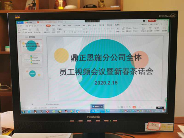 2020年2月15日下午三点,受疫情的影响,鼎正恩施分公司通过视频会议的形式,召开了全体员工视频会议暨新春茶话会,即使大家没有以面对面的方式参与这次会议,但是也能够通过网络与大家零距离地分享自己在这个特殊春节的所见所闻与个人经历。