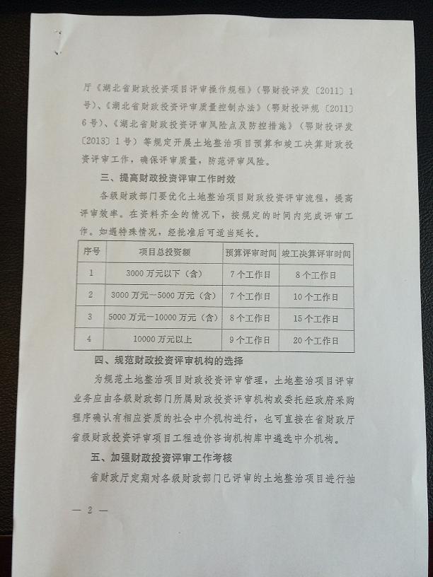 湖北省财政厅关于规范土地整治项目财政投资评审工作的通知